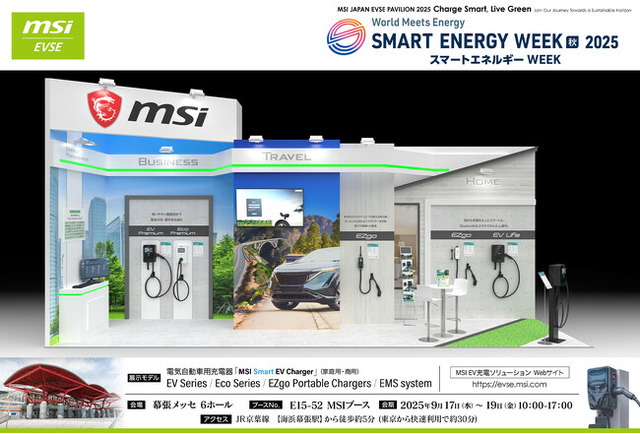MSIブースでは、7インチモニターを搭載したEV充電器「EV Premium」をはじめ、EVシリーズ、Ecoシリーズなどの各種EV充電ソリューションを展示し、来場者の皆様に最新技術をご体験いただけます。