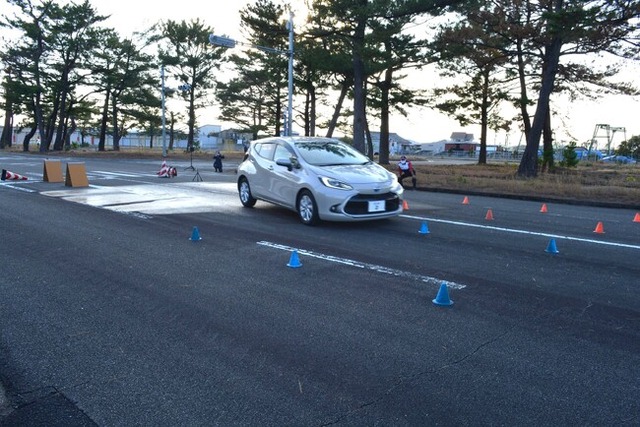 走行中の急な飛び出しや障害物を想定し、運転操作や車の挙動を確認します。