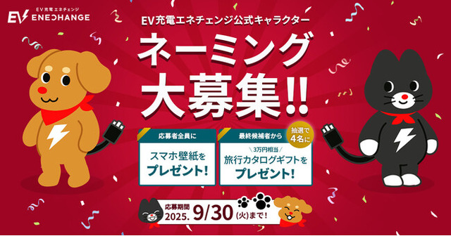 あわせて、本日よりキャラクターの名前を全国から募集するキャンペーン「EV充電エネチェンジ公式キャラクター ネーミング大募集」を開始いたします。ご応募いただいた方全員にスマートフォン用オリジナル壁紙をプレゼントし、さらに抽選で旅行カタログギフトが当たる特典もご用意しています。