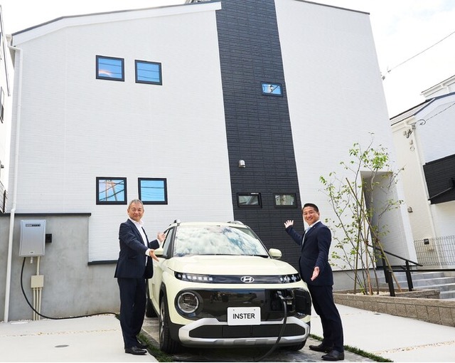 このたび両社は、2025年4月に発売されたヒョンデの最新EV「INSTER」と、太陽光発電・蓄電池を標準装備しZEH基準に対応した高性能住宅「ウーディア」を組み合わせた新しいライフスタイル提案をスタートします。第1弾として、埼玉県さいたま市南区に建設された2棟を対象に、9月30日より販売を開始します。