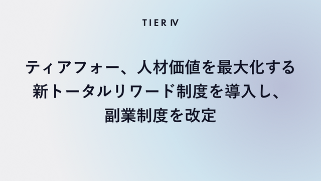 自動運転の社会実装をリードする株式会社ティアフォー(本社:東京都品川区、代表取締役 執行役員 CEO:加藤 真平、以下ティアフォー)は、「自動運転の民主化」というビジョンの実現に向け、優秀なグローバル人材を獲得し、その価値を最大限に発揮してもらうため、人事制度の抜本的な改革を進めています。この取り組みの一環として、魅力ある人事制度の導入・改善を続けるべく、2025年10月1日付けで新トータルリワード(グレード・評価・報酬)制度を導入し、副業制度を改定します。