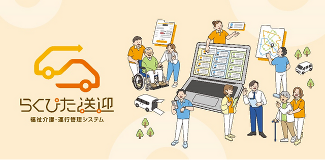 『らくぴた送迎』は、社会課題である介護現場の労働生産性向上に向けて、通所介護施設の送迎業務を送迎前・送迎中・送迎後の各シーンでサポートする運行管理システムであり、2018年の発売以来、全国の通所介護施設でご利用いただいています。また、『らくぴた送迎』で培った知見を基に、複数の介護施設の送迎共同化を起点とし、送迎車両を活かして地域の高齢者の移動や暮らしを支援する「福祉介護・共同送迎サービス『ゴイッショ』」も提供しています。