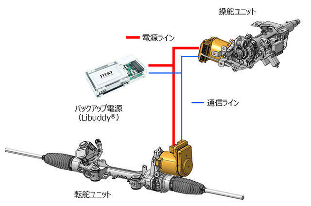 【ステア・バイ・ワイヤシステムとバックアップ電源のイメージ図】