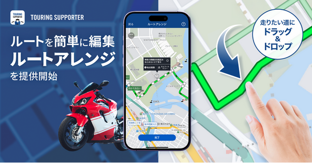 株式会社ナビタイムジャパン(代表取締役社長:大西 啓介、本社:東京都港区)は、2025年10月2日(木)より、バイク専用ナビゲーションアプリ『ツーリングサポーター by NAVITIME』にて、「ルートアレンジ」機能を提供開始します。