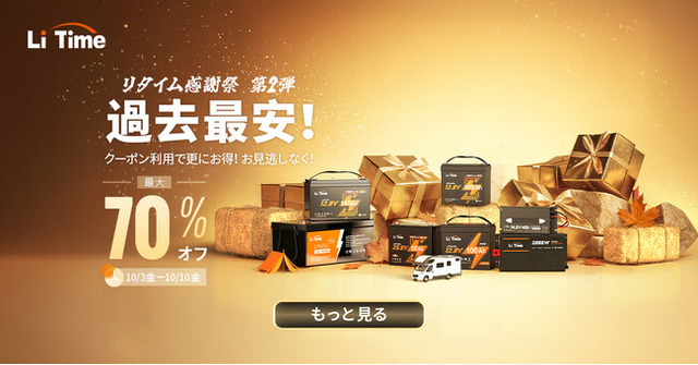 日頃からご愛顧いただいている皆さまへの感謝を込めて、10月4日(土)から10月10日(金)までの7日間、LiTime公式サイトにて「リタイム秋の感謝祭」を開催いたします。