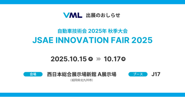 自動運転・制御系エンジニア育成事業を展開するVirtual Motorsport Lab Inc.(本社:大阪府大阪市北区、代表取締役 山下洋樹、以下 VML)は、2025年10月15日(水)~17日(金)の期間中、自動車技術会 2025年秋季大会の展示会「JSAE INNOVATION FAIR 2025」に出展することをお知らせします。