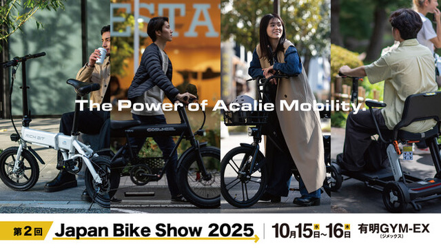 次世代型商品を展開する株式会社Acalie(本社:愛知県名古屋市、代表取締役:中友 孟涛)は、10月15日(水)~16日(木)に有明GYM-EXで開催される「Japan Bike Show 2025」(主催:一般財団法人自転車産業振興協会)にAcalieモビリティ全ブランド集結し出展します。