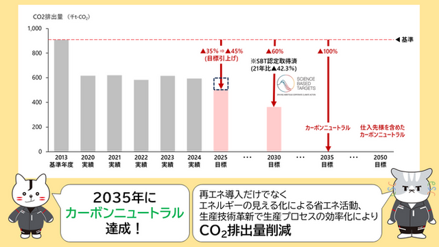ジェイテクトグループは、「環境チャレンジ2050」を策定し「All for One Earth」をスローガンに、かけがえのない地球を次世代につなぐためのチャレンジをし続けています。カーボンニュートラル達成のためにScope1,2,3すべてにおいてCO2排出量削減をすすめ、自社の生産活動に関連するScope1,2においては2035年にカーボンニュートラル達成を目指しています。