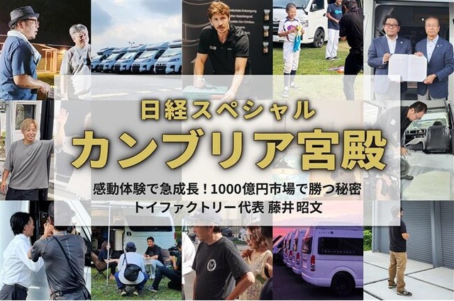 トヨタハイエースおよびフィアットデュカトのキャンピングカー製造台数で国内首位を誇り、キャンピングカー業界を牽引する株式会社トイファクトリー(本社:岐阜県可児市、代表取締役:藤井昭文)は、2025年10月9日(木)に放送されたテレビ東京系列の経済番組「日経スペシャル カンブリア宮殿」に出演いたしました。