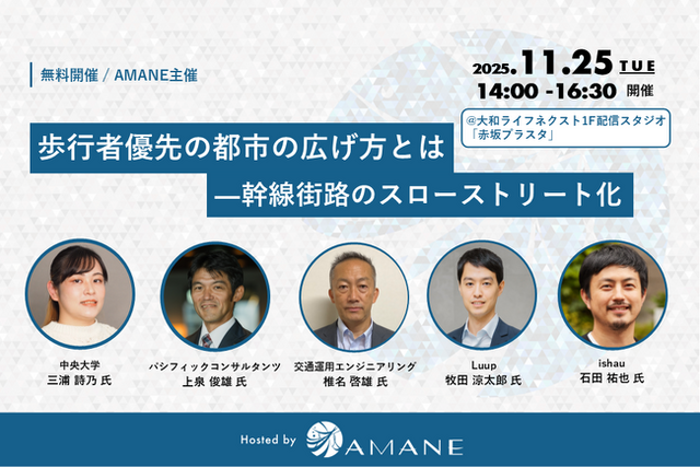 本勉強会では、こうした国際的な潮流を「スローストリート化」と位置づけ、交通分野の専門家・モビリティ事業者、都市デザイナーの視点から多角的に読み解きます。加えて、東京都の街路をケーススタディに導入可能性を検討し、歩行者優先の都市空間をどのように広げていけるか、参加者とともに議論します。