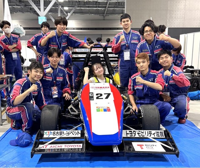 トヨタ名古屋自動車大学校・ICVチームの皆さんと取材班(学生フォーミュラ会場にて)