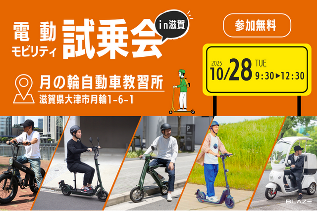 株式会社ブレイズ(本社:愛知県名古屋市、代表取締役:市川秀幸、以下「ブレイズ」)は、2025年10月28日(火)に滋賀県大津市の「月の輪自動車教習所」にて開催される試乗会に参加いたします。