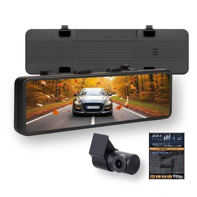 デジタルバックミラー本体、リアカメラ(ケーブル長0.5m)、シガー電源ケーブル(4.5m)、リアカメラケーブル(10m)、リアカメラ用両面テープ×1枚、本体固定ゴムバンド×1セット、照度センサー(ケーブル長0.2m)x1セット、照度センサー用両面テープ(予備)x1枚、取扱説明書(保証書付き)