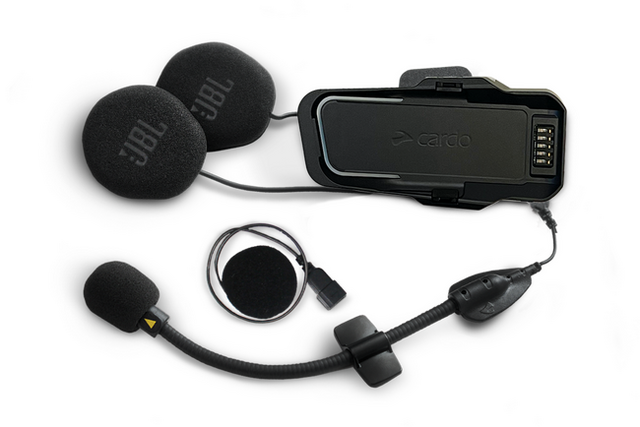 オーディオマイクキットは、複数のヘルメットでインカム本体ユニットを使い回すためのCardo純正アクセサリーです。あらかじめヘルメットに本キットを取り付けておけば、他のヘルメットからマイク・スピーカー等を取り外す面倒がなく、素早く確実にインカム本体を装着できます。