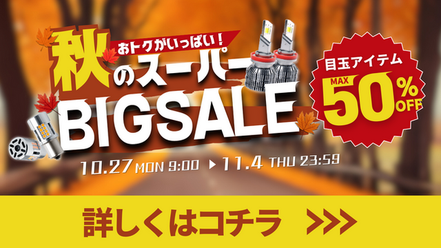 最大50%OFFの秋のビッグセールは10月27日(月) 9:00 開幕!