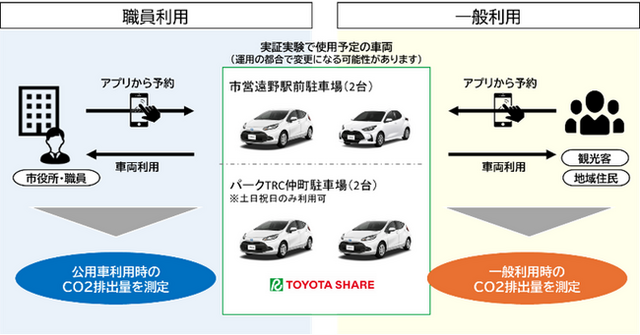 トヨタ自動車株式会社(以下、トヨタ)が提供するカーシェアサービス「トヨタシェア」は、東日本旅客鉄道株式会社(以下、JR東日本)、株式会社ジェイアール東日本企画と連携し、岩手県遠野市にて、市の公用車をカーシェアとして一般利用も可能とする実証実験を行います。
