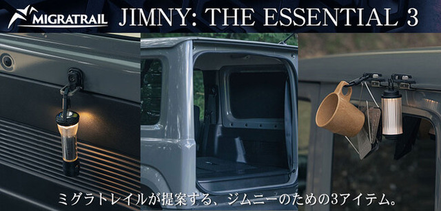 アウトドアブランド『MIGRA TRAIL(ミグラトレイル)』(株式会社ダートフリーク)は、スズキ ジムニー(JB64W/JB74W)向けに設計された3つのアクセサリーを発売中です。