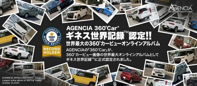 自動車業界のデジタルトランスフォーメーション(DX)をAIと360°撮影技術で推進する株式会社AGENCIA(本社:愛知県名古屋市東区、代表取締役CEO:ジャン・ピエール)は、自社が開発・提供するSaaSプラットフォーム「360°Car(R)」が、「世界最大のオンライン360°車両ビューアルバム(Largest online album of 360° car views)」としてギネス世界記録(TM)(GUINNESS WORLD RECORDS(TM))に正式認定されたことを発表した。