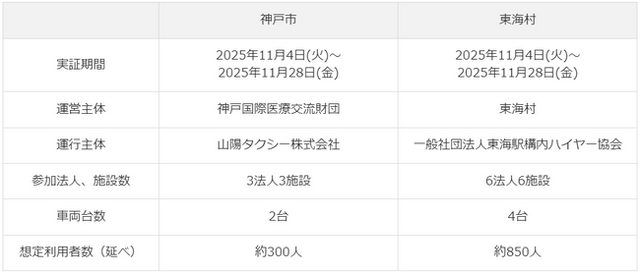 実証期間中は、公益財団法人神戸国際医療交流財団が運営主体となり、地域の交通事業者と連携して運行を実施します。ダイハツは運行管理システムの提供や運営マニュアル作成、関係事業者との運営に向けた調整など、運営体制構築を支援します。市内の3法人3施設が参加し、2台の車両で朝夕の送迎を行い、延べ約300人の送迎を予定しています。