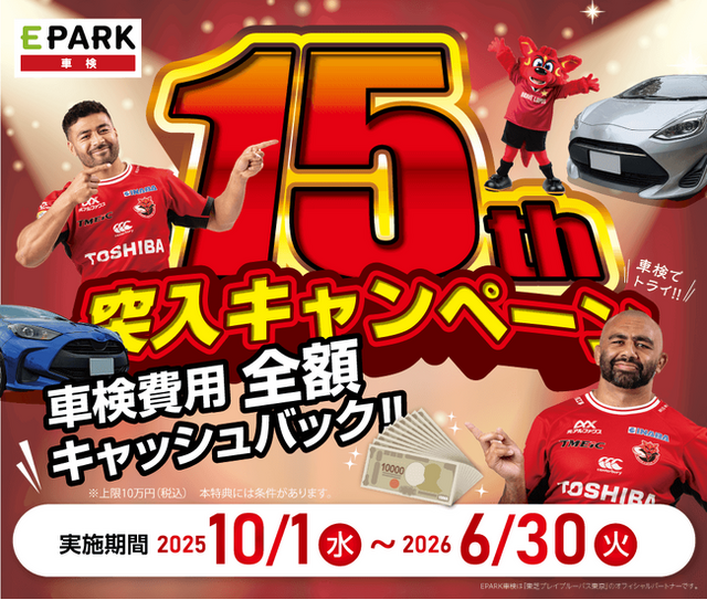 EPARK車検は「東芝ブレイブルーパス東京」のオフィシャルパートナーです。