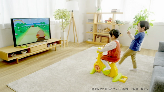 冬到来!運動不足に陥りやすい季節にピッタリのサイクリングトイ誕生! 寒さや日照時間の短さ、居住環境の制約で外遊びがさらに難しくなる冬が到来しました。本日発売の『運動・知育・遊びもいっぱい!GoGo!アンパンマンサイクリング』は、天候や時間に左右されず、国が推進する「日常生活の中での身体活動の増加」に合致した、テレビ連動型サイクリングトイです。ペダルを漕ぐ動きに合わせてテレビ画面のアニメーションが連動し、全12メニューの運動・知育遊びを楽しめます。ペダルを漕いだ分だけキャラクターが前に進む仕組みで、お子様の「やりたい・続けたい」を自然に引き出します。テレビに接続しない時でも本体から音が出る「サウンドプレイモード」も搭載しているので、いつでも好きな時に乗って運動することも可能な商品です。