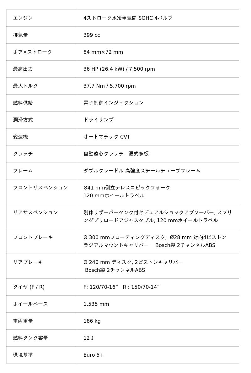 Aprilia SR GT 400 - Technical data(EU仕様)