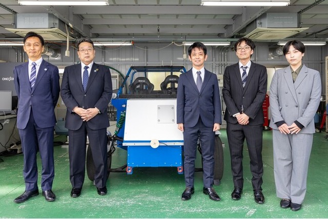(写真左から)小野測器 上席執行役員特注・エンジニアリング領域担当 安地 隆浩、小野測器 代表取締役社長 大越祐史、東京大学大学院新領域創成科学研究科 教授 藤本 博志、東京大学大学院新領域創成科学研究科 特任講師 永井 栄寿、東京大学大学院新領域創成科学研究科 博士課程 尾田 未知