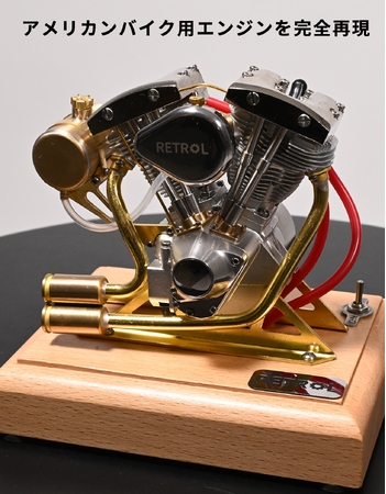 [画像2: https://prcdn.freetls.fastly.net/release_image/114048/66/114048-66-daea1d1b2f1a82c1a261e27f80142f51-1280x1644.png?width=536&quality=85%2C75&format=jpeg&auto=webp&fit=bounds&bg-color=fff ]Vツインエンジンの特長であるプッシュロッドやドロップ型エアクリーナーなどを完全に再現し、模型とはいえ、すべて実物同様に機能します。