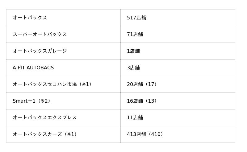 ご参考:オートバックスグループ国内店舗数 計1,052店舗