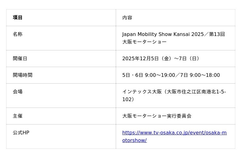 Japan Mobility Show Kansai 2025/第13回大阪モーターショー概要