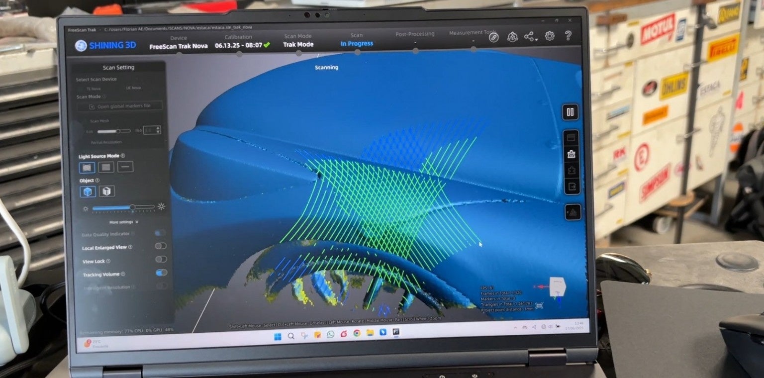 これを実現するには、空力最適化、カスタム部品の設計、そしてチーム間の連携のために、ボディとシャーシの高精度かつ高解像度の3Dモデルが不可欠でした。そこで、SHINING 3Dの3Dスキャン技術が導入されました。