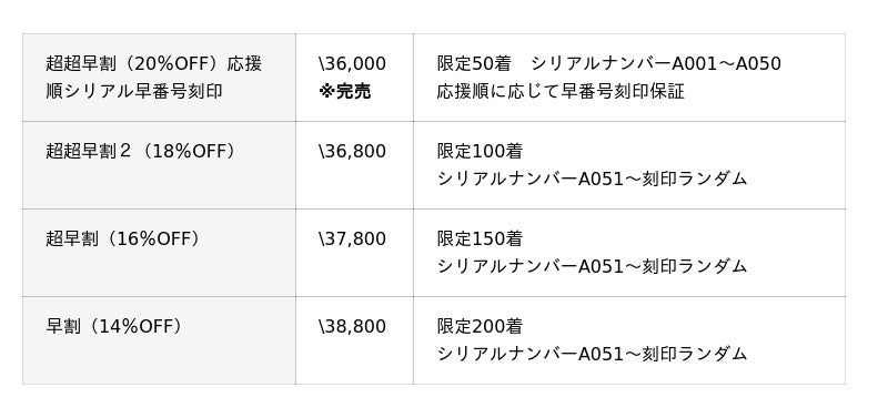 応援者様には手打ちシリアルナンバーを刻印応援者様全員に全て番号違いのシリアルナンバーを私達の感謝の気持ちを込めて一着一着パッチに手打で刻印してお送りいたします(刻印については上述の「SFG Light MX II Premium開発商品」をご参照ください)。
