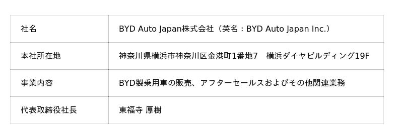 【BYD Auto Japan株式会社について】