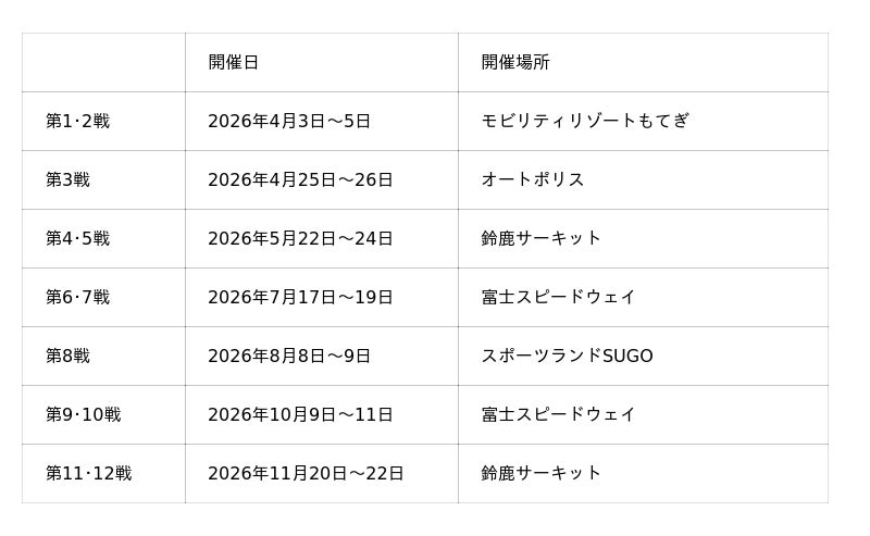 2026 SUPER FORMULA レース予定