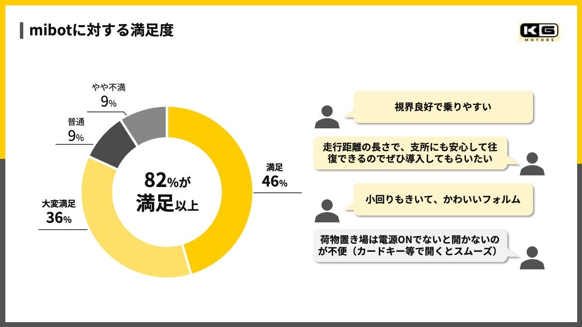 業務車両としての総合満足度は高く、回答者の82%が「満足」または「大変満足」と回答しました。