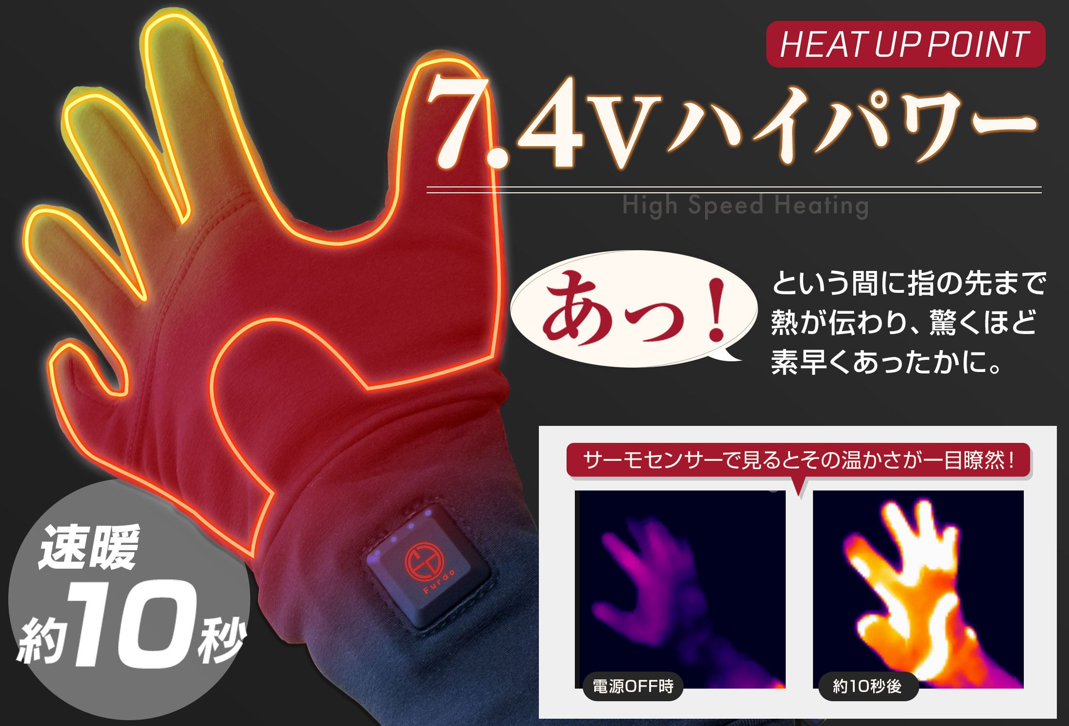スイッチを入れた瞬間から熱が伝わり始め、わずか10秒で指先から手の甲までを包み込む「速暖性能」が最大の特徴です。