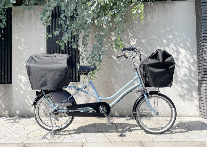 自転車の積載容量アップ。荷物の飛び出しや車輪巻き込み、雨、盗難などを防止して安全に