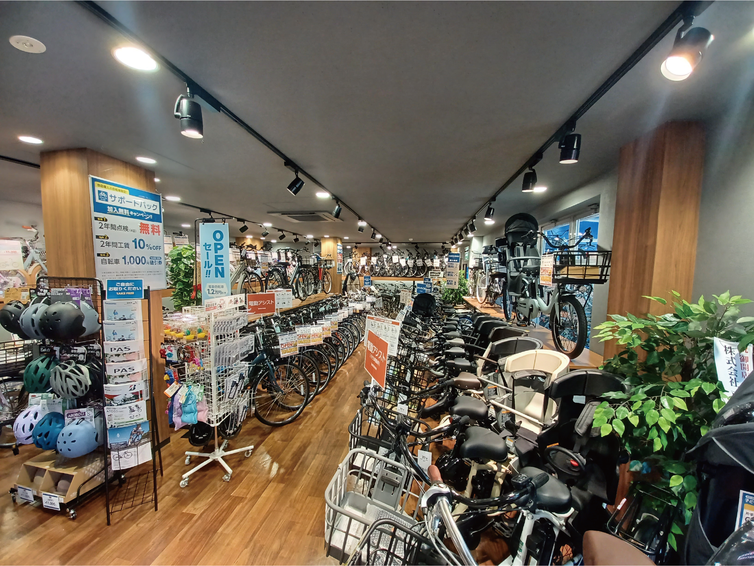 小型の店舗ながら140台以上の自転車をご用意しておりますので、買い求めいただきやすい価格のダイワサイクルオリジナル自転車から、通勤通学におすすめのカゴの大きな電動アシスト自転車まで多様なラインナップをご用意いたしております。