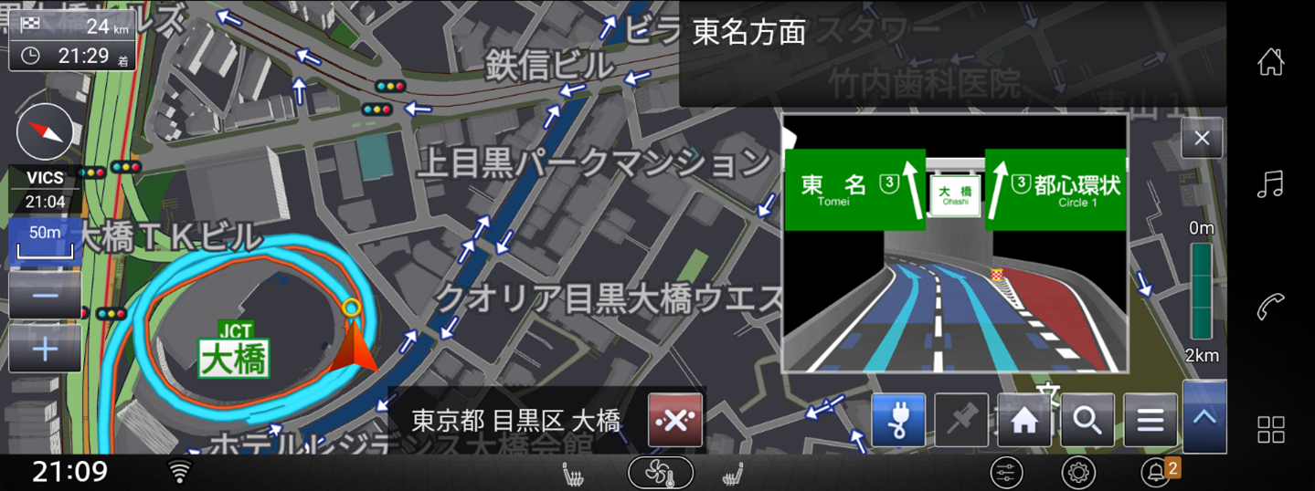 近年、車載ディスプレイとスマートフォン等を連携して利用する「ディスプレイオーディオ」の普及が進み、従来の専用カーナビに加え、多様なナビゲーションの形が選択できるようになっています。一方で、日本特有の複雑な道路環境においては、より詳細かつ信頼性の高い地図情報と丁寧なルート案内が求められています。そこでゼンリンは、ディスプレイオーディオに最適化した、必要な地図データや最新情報をクラウドで都度取得する“完全通信型”のナビゲーションアプリを開発しました。