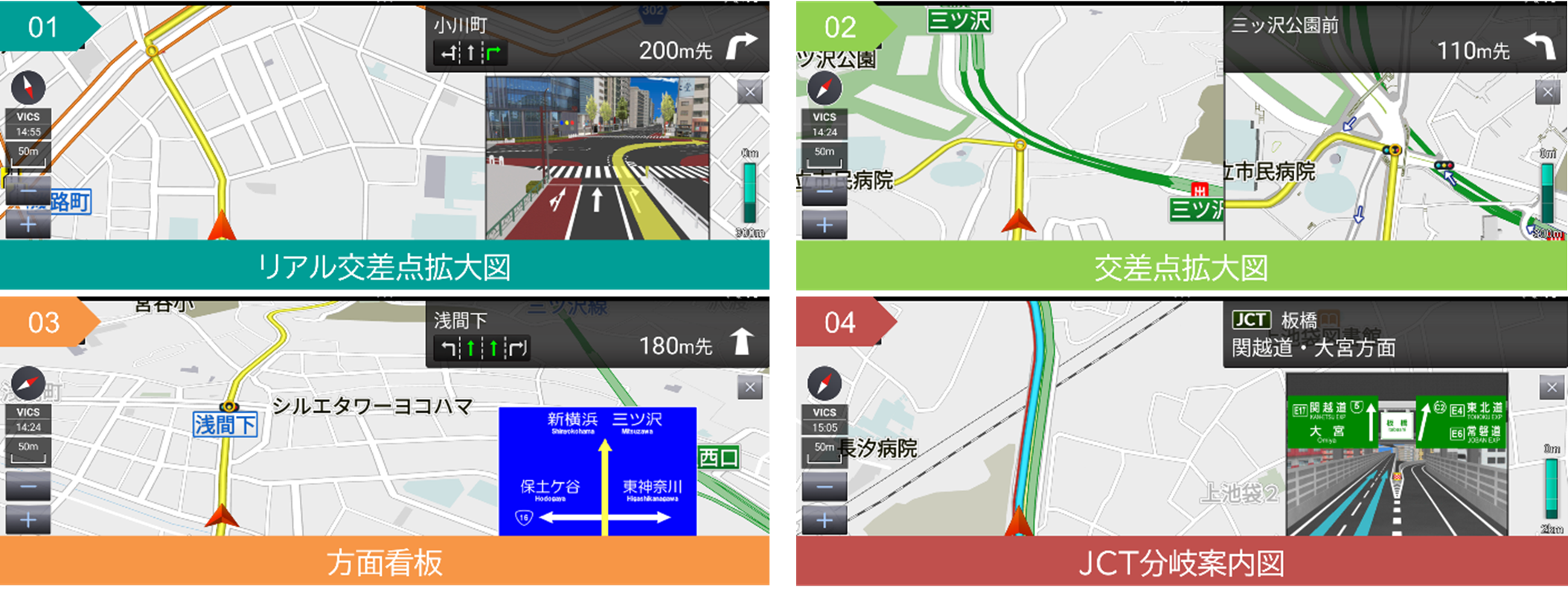ゼンリン独自の車両調査等で取得した交差点・看板情報をもとに、分かりやすく丁寧な案内を実現