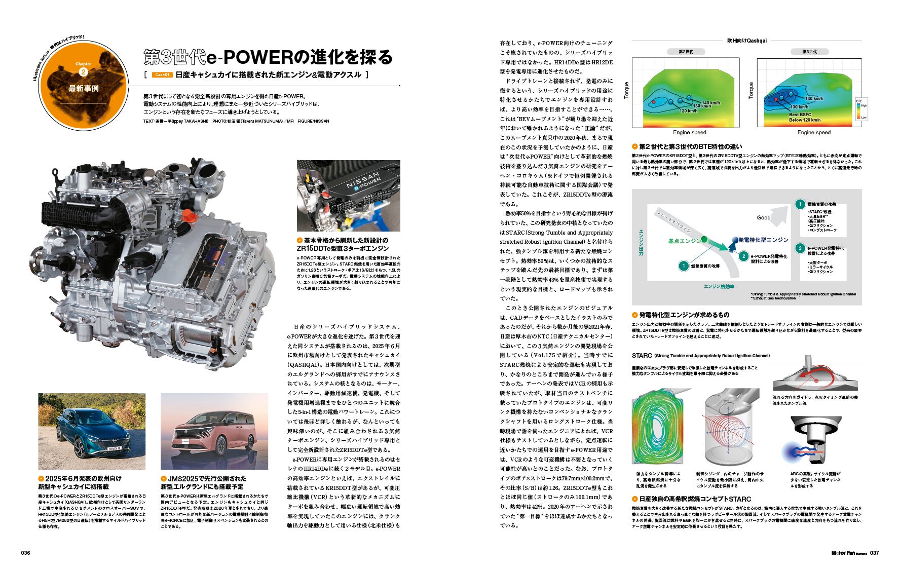 エンジンは発電に徹し、タイヤを駆動するのはモーターのみというのが「シリーズ式」ハイブリッドです。その代表格である日産e-POWERの最新世代が、昨年夏に欧州で販売をスタートした新型キャシュカイに搭載されているもの。「第3世代」と日産が銘打ったこのシステムの、完全新設計された1.5L直3ターボエンジンや電動駆動ユニットを詳細に分析しました。