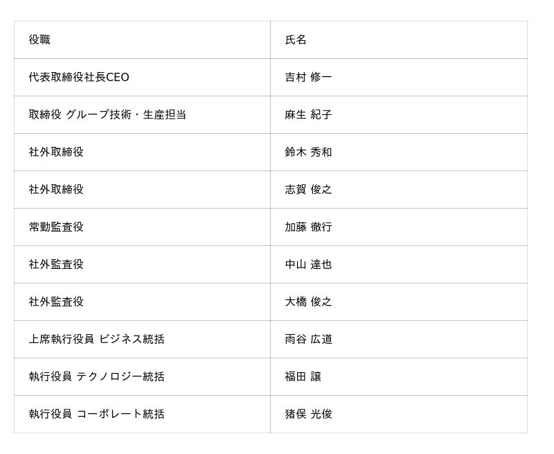 (ご参考)4月以降の当社の取締役、監査役、執行役員の体制は以下の通りです。