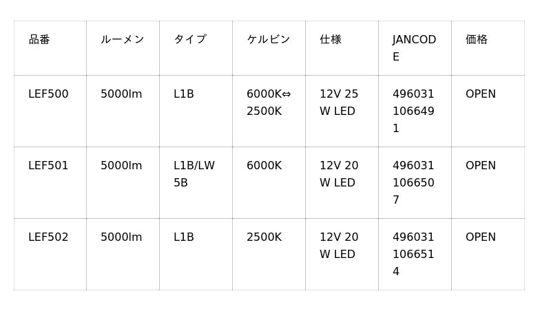 ★純正LEDに比べて、明るさ約625%!! (本製品5000lmに対し、一般純正800lm)★LEF500(L1B)、LEF501(L1B/LW5B)、LEF502(L1B)の3タイプをラインナップ