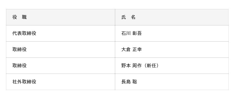 ・現 取締役副社長 石川 彰吾は、新たに代表権が付与されます。