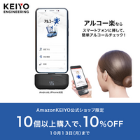 KEIYOスマートフォンに挿すだけでアルコールチェック!記録も簡単!業務用「アルコー楽」が10個以上購入で10%OFF、AmazonKEIYO公式ショップにて限定10/13(月)まで!