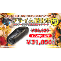 秋のツーリング、前方・後方の“死角”と“暗闇”を撃退。前後同時録画・超高感度センサー搭載ヘルメットカメラ「Driveman DD-1000」、プライム感謝祭に登場。